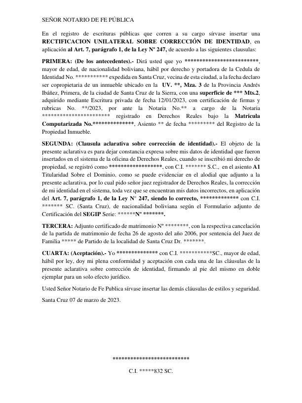 DESCARGAR MINUTA DE RECTIFICACION UNILATERAL SOBRE CORRECCIÓN DE IDENTIDAD en WORD Descargar...