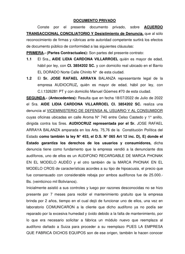 DESCARGAR MODELO DE ACUERDO TRANSACCIONAL CONCILIATORIO y Desistimiento de Denuncia en...